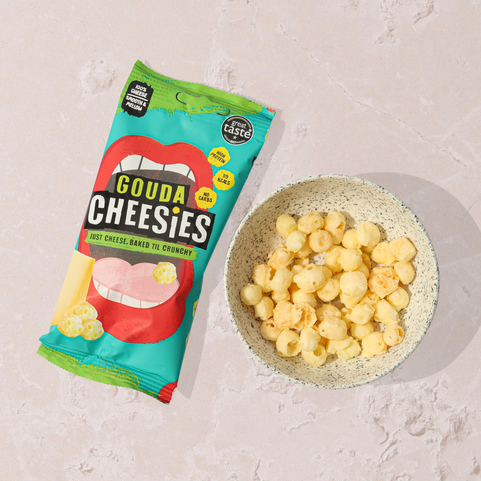 Mellow, creamy and slightly sweet – Cheesies Gouda is a moreish snack made from nothing but real Gouda cheese. Baked until crisp, it’s high in protein with zero carbs or sugar. Simple, satisfying and seriously cheesy.